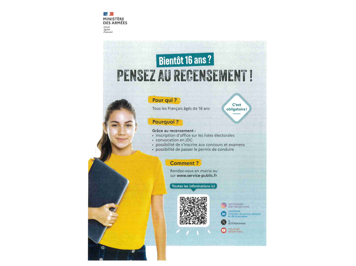 Tous les jeunes français, garçons et filles, doivent se faire recenser à la Mairie de leur domicile.
